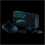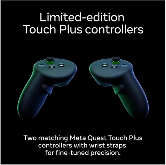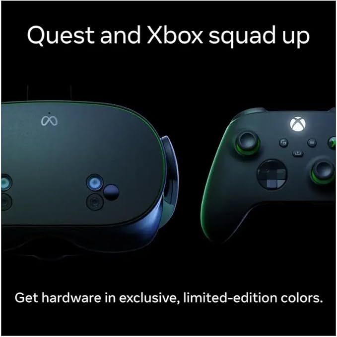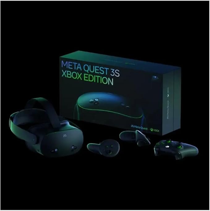 Play Xbox bigger than ever Meta Quest 3S Xbox Edition is not available in your region, but you can still play Xbox on an 8-metre (26-foot) virtual screen with Meta Quest 3/3S. Game on. And on. Stream hundreds of high-quality games directly on your Meta Quest with Xbox Game Pass Ultimate. And tap into Meta Quest’s vast library of immersive titles. Unbox and lock in Purchase includes everything you need to get started and more. Advanced hardware stack with the Snapdragon XR2 Gen 2, delivering double the GPU processing power for faster load times and more seamless gameplay compared to Meta Quest 2. This brings enough power to support heavy applications such as fast-action gaming, seamless full-colour, high-resolution Pass-through and so much more. Storage 128 GB option. Storage options to match your needs. Higher storage allows you to download more experiences to your headset, or video content for offline viewing. Mixed reality 2 RGB cameras with 18 PPD for 4.5 times better pass-through resolution, in full colour, compared to Quest 2. Delivers high-fidelity views of your surroundings while you see virtual objects appear in your physical space. Depth and room mapping using advanced AI and computer vision gives you freedom to move throughout your space and interact with virtual characters or objects in the room around you. Audio Quest 3S audio has reduced distortion, improved bass and better spatial audio than Quest 2. Meta Quest 3S is compatible with USB-C headphones. You can also use a 3.5 mm-to-USB-C adapter for headphones with a 3.5 mm jack (sold separately). DRAM 8 GB. 33% more memory compared with Meta Quest 2, giving you more support to play your favourite apps with optimal performance. Ergonomics Comfort Lightweight comfort. Quest 3S has been designed to be even more comfortable than Quest 2 by helping users find the setup that works best for them. Strap design Soft adjustable strap accommodates a variety of head shapes and hairstyles; Hard strap is available and sold separately. Depth adjustment Meta Quest 3S comes with a glasses spacer in the box for wearing glasses while using the headset. Headset weight 514 grams. Quest 3S is 20% slimmer than Quest 2.* *Excluding the facial interface. Display and optics technology Display resolution High-definition resolution with 1832 x 1920 pixels per eye with 20 PPD (pixels-per-degree) and 773 PPI (pixels-per-inch). Refresh rate 72 Hz, 90 Hz, 120 Hz. Field of view 96 degrees horizontal and 90 degrees vertical. Optics Fresnel lens. Lens adjustment 3-position interaxial distance (IAD) adjustment. Eye tracking Not featured. Meta Quest Touch Plus controllers Comfort Play comfortably with a streamlined, ring-free design. Experience more natural movement and precise input as if they’re a natural extension of your hands. Haptics TruTouch variable haptics provide tactile feedback, enabling a more holistic range of in-experience sensations so you can touch, move and react realistically within virtual environments. Experience Mixed reality passthrough Two RGB colour cameras for improved depth and resolution. Direct Touch hand tracking Advanced hybrid computer vision and machine learning sensors follow your gestures, with four IR cameras and two RGB cameras to enable controller-free navigation and more intuitive control. Two flood LEDs for illumination and more reliable hand interactions across environments and lighting conditions. Simply move your hands to tap, scroll, navigate and play. Content library Thousands of experiences. There’s something for everyone to discover in more immersive ways, thanks to mixed reality and better performance enabling faster load times, seamless play and ultra-realistic graphics. Backwards compatibility Access to the entire catalogue of Meta Quest apps, games and experiences. Keep playing your favourite titles that you previously downloaded on your Quest 2. Play the newest games and apps that are exclusively available on Quest 3 and 3S. PC support Supported with Meta Quest Link Cable and Air Link to connect your headset to the power of your PC to unlock yet another level of gameplay (sold separately). Charging Battery life Up to 2.5 hours average use.Gaming: 2.7 hours of usage on averageSocial: 2.3 hours of usage on averageProductivity: 1.8 hours of usage on averageMedia: 2.8 hours of usage on average As with most battery powered devices, battery life is dependent on various factors such as device settings, usage, age of battery, Bluetooth usage and wireless conditions. Charge time Approximately 1.9 hours with the included 18W power adapter (headset only). Easy charging Built-in USB-C port for charging and connectivity.