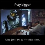 Transform any space into your own personal gaming arena with a virtual screen that can stretch up to 26 feet